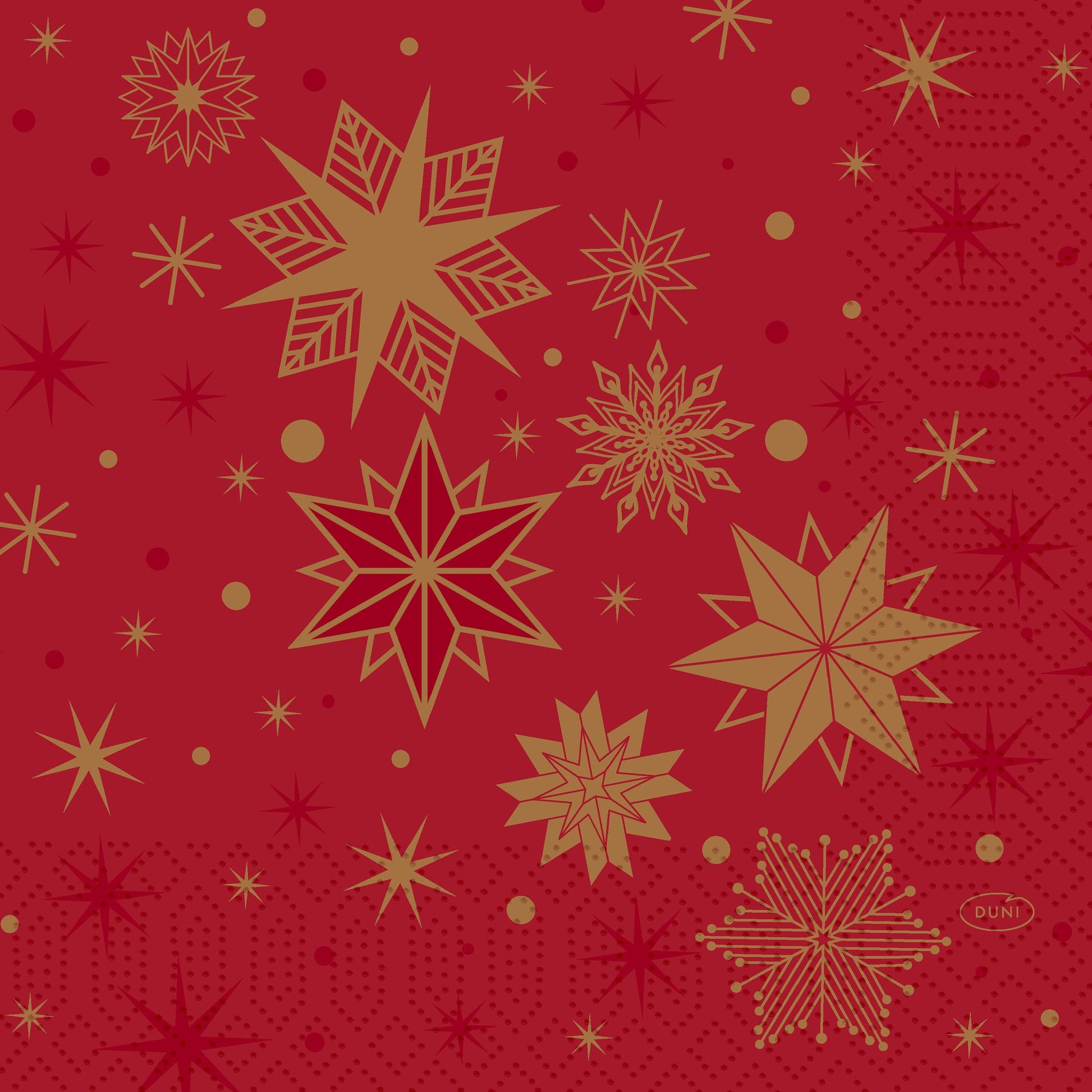 Die „Stargazing Red“ Servietten im Format 33 x 33 cm setzen mit ihrem edlen Rotton und feinen Sternmotiven festliche Akzente. Ob für Weihnachten, Silvester oder winterliche Anlässe – diese Servietten verleihen Ihrer Tafel eine warme und elegante Atmosphäre. Hergestellt aus hochwertigem 3-lagigem Tissue, überzeugen sie durch Stabilität, Saugkraft und angenehme Haptik.
