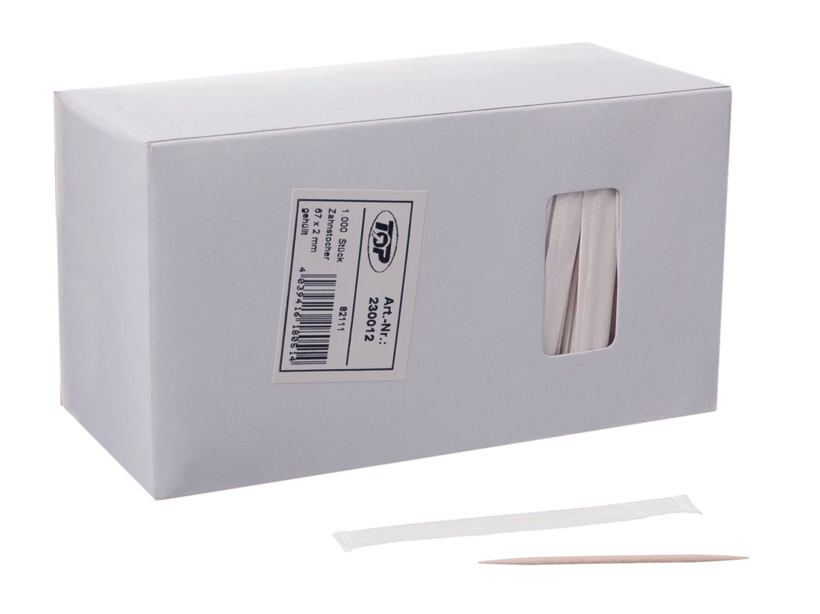 Zahnstocher Holz, gehüllt, 67 × 2 mm – 1 000 Stück